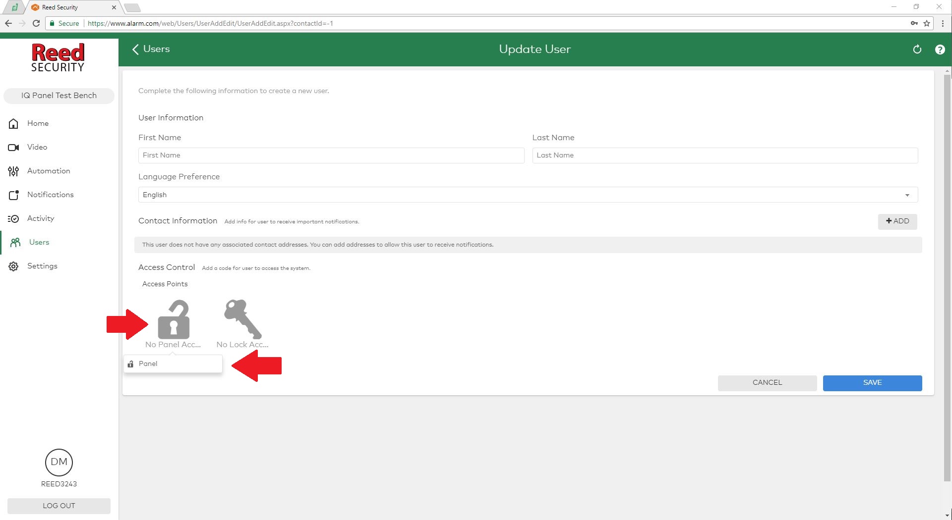 ***!!!*** Please Note that the user must have have a panel access code so it can transfer over to the locks.***!!!***
