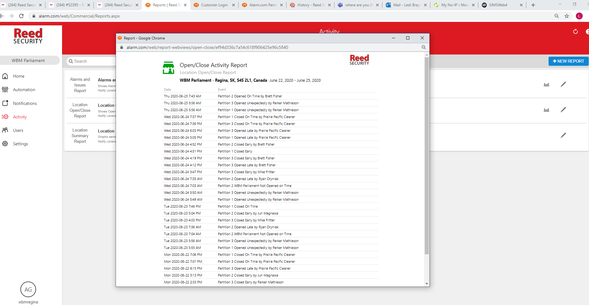 To access the reporting option - select the "reports" at the top of the page beside the activity menu - select the graph icon on the right hand side to run a selected report or select the pencil to edit your existing report (add new report recipients, change reporting parameters etc.)